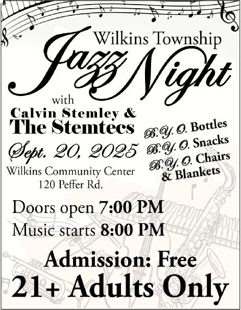 Please join Wilkins Township on September 20, 2025 for a Jazz Night. If you have any questions, please email Gerry at This email address is being protected from spambots. You need JavaScript enabled to view it..